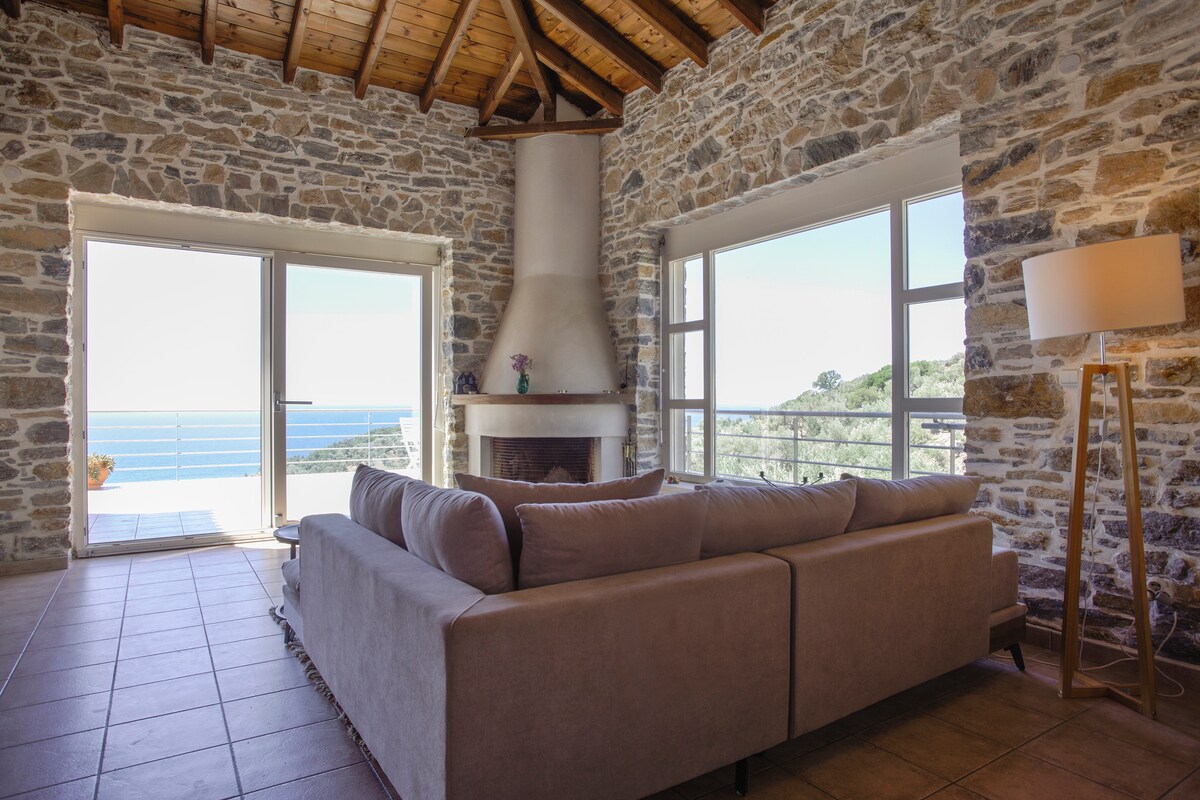 ಪ್ಲುಮರಿಯಲ್ಲಿರುವ ಪ್ರೈವೇಟ್ ಅನನ್ಯ ವಿಲ್ಲಾ, ಉಸಿರುಕಟ್ಟುವ ಸಮುದ್ರದ ನೋಟವನ್ನು ಹೊಂದಿರುವ ಸ್ತಬ್ಧ ಸ್ಥಳ, ಪೈನ್ ಅರಣ್ಯದ ಜೊತೆಗೆ ಪ್ಯಾಂಪರಿಂಗ್ ಪ್ರೈವೇಟ್ ಇನ್ಫಿನಿಟಿ ಪೂಲ್ ಮತ್ತು ಅಂಗಳದಲ್ಲಿ ಎರಡು ಸೂರ್ಯನ ಹಾಸಿಗೆಗಳು ಮತ್ತು ಸಮುದ್ರದ ಸುಂದರ ನೋಟ ಮತ್ತು ಪ್ಲುಮಾರಿ ಗ್ರಾಮದ ಮುಂದೆ ಆಲಿವ್ ಮರದ ಕೆಳಗೆ ಊಟದ ಪ್ರದೇಶವಿದೆ. ಪರಿಪೂರ್ಣ ರಜಾದಿನಗಳು.