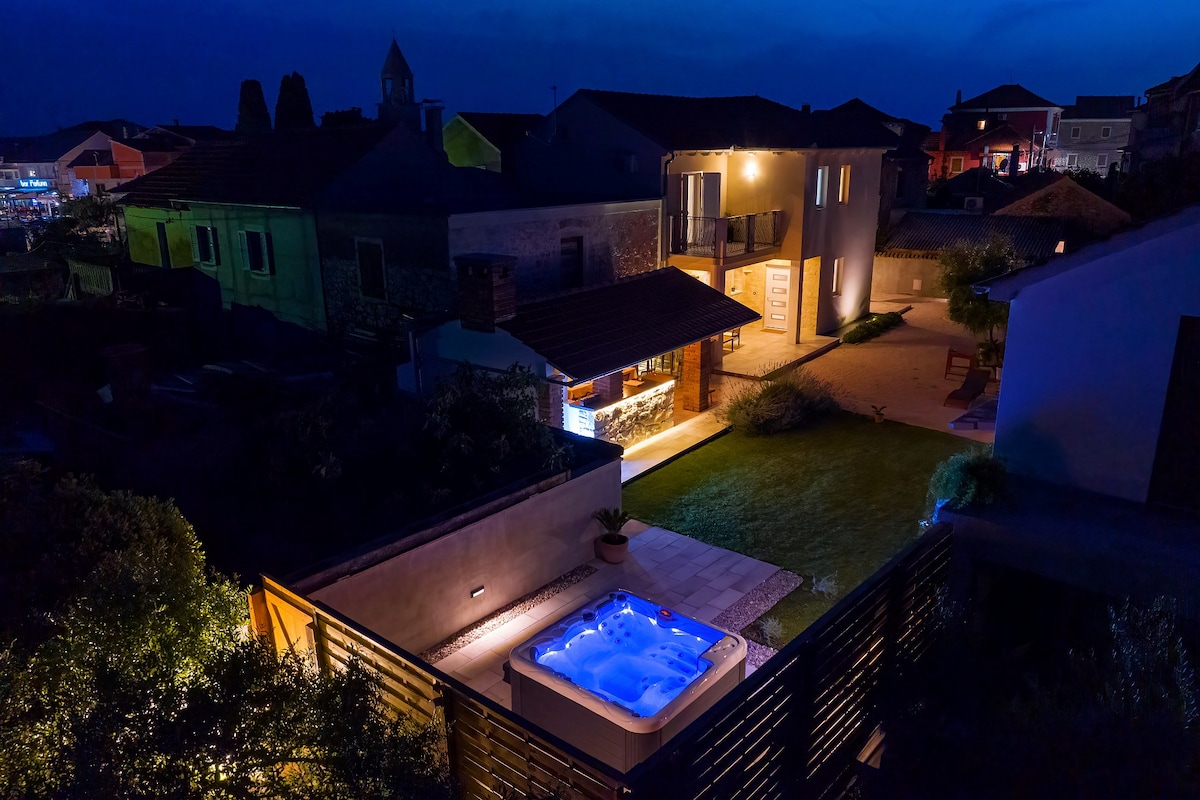 ವಿಲ್ಲಾ ಡ್ವೊರಿ ಒಂದು ವಿಶಿಷ್ಟ ಹಳ್ಳಿಗಾಡಿನ ರಜಾದಿನದ ಮನೆಯಾಗಿದ್ದು, ಇದು ಅತ್ಯಂತ ಹಳೆಯ ಕ್ರೊಯೇಷಿಯಾದ ರಾಜಮನೆತನದ ಪಟ್ಟಣವಾದ ನಿನ್ನ ಮಧ್ಯಭಾಗದಿಂದ ಸುಮಾರು 500 ಮೀಟರ್ ದೂರದಲ್ಲಿದೆ. ಪುನಃಸ್ಥಾಪಿಸಲಾದ ಭಾಗಗಳು 1853 ರ ಹಿಂದಿನವು ಮತ್ತು ಮನೆಯು ಆ ಯುಗದ ಕಲ್ಲಿನ ಗೋಡೆಯಿಂದ ಸಂಪೂರ್ಣವಾಗಿ ಆವೃತವಾಗಿದೆ, ಇದು ನಮಗೆ ವಿಶೇಷತೆಯನ್ನು ನೀಡುತ್ತದೆ ಮತ್ತು ವಿಶೇಷ ಮತ್ತು ಅಧಿಕೃತ ಅನುಭವವನ್ನು ನೀಡುತ್ತದೆ. ನಾವು ಒದಗಿಸುವ ಸಂಪೂರ್ಣ ಅನ್ಯೋನ್ಯತೆಯಲ್ಲಿ ವಿಶ್ರಾಂತಿ ಪಡೆಯಿರಿ, ದಂಪತಿಗಳಲ್ಲಿ ಅಥವಾ ಕುಟುಂಬದೊಂದಿಗೆ ಈಜುಕೊಳವನ್ನು ಆನಂದಿಸಿ ಮತ್ತು ನಿಮಗೆ ಅಗತ್ಯವಿರುವ ಎಲ್ಲದಕ್ಕೂ ಹತ್ತಿರದಲ್ಲಿ, ಡಾಲ್ಮೇಷಿಯನ್ ಸೂರ್ಯ ಮತ್ತು ಸಮುದ್ರದ ವಾಸನೆಯಲ್ಲಿ ಸ್ನಾನ ಮಾಡಿ.
