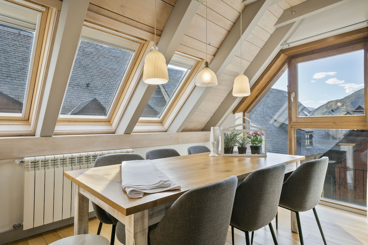 ವಿಯೆಲ್ಹಾದ ಮಧ್ಯಭಾಗದಲ್ಲಿ ಪ್ರಕಾಶಮಾನವಾದ ಅಟಿಕ್ ಡ್ಯುಪ್ಲೆಕ್ಸ್. ಜುಲೈ ಮತ್ತು ಆಗಸ್ಟ್ನಲ್ಲಿ ಪಾರ್ಕಿಂಗ್ ಸ್ಥಳ ಮತ್ತು ಈಜುಕೊಳದೊಂದಿಗೆ. ದಕ್ಷಿಣಕ್ಕೆ ಮುಖಮಾಡಿದ ಮತ್ತು ಅಡೆತಡೆಯಿಲ್ಲದ ವೀಕ್ಷಣೆಗಳು. ಬೆಚ್ಚಗಿನ ಮರದ ಫಿನಿಶಿಂಗ್ಗಳು. ಗರಿಷ್ಠ 4 ಜನರಿಗೆ ಸ್ಥಳಾವಕಾಶವಿದೆ (ಡಬಲ್ ಬೆಡ್ + ಡಬಲ್ ಸೋಫಾ ಬೆಡ್) ದಂಪತಿಗಳು, ಕುಟುಂಬಗಳು ಅಥವಾ ಪರ್ವತ, ಹೈಕಿಂಗ್, ಸ್ಕೀ ಇಳಿಜಾರುಗಳು ಅಥವಾ ಕಣಿವೆಯ ಗ್ಯಾಸ್ಟ್ರೊನಮಿಯನ್ನು ಆನಂದಿಸಲು ಬಯಸುವ ಸಣ್ಣ ಗುಂಪುಗಳಿಗೆ ಸೂಕ್ತವಾಗಿದೆ. ನಿಮ್ಮ ಸಾಕುಪ್ರಾಣಿಯನ್ನು ಕುಟುಂಬದಲ್ಲಿ ಒಬ್ಬರಾಗಿ ಸ್ವಾಗತಿಸಲಾಗುತ್ತದೆ ಎಂಬುದನ್ನು ಮರೆಯಬೇಡಿ.