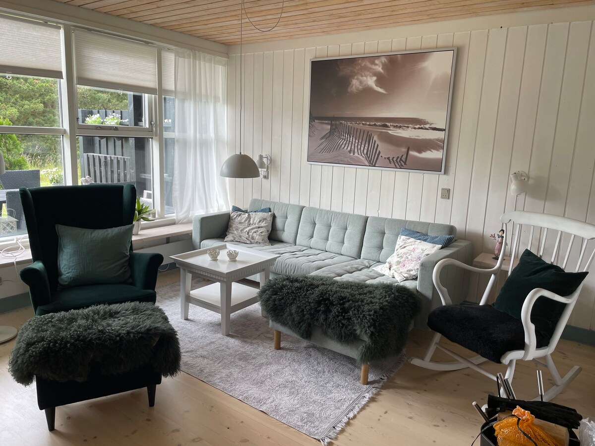 ಆರಾಮದಾಯಕ ಕಾಟೇಜ್ ಸುಂದರವಾದ ಮಕ್ಕಳ ಸ್ನೇಹಿ ಕಡಲತೀರದಿಂದ ಒಂದು ಸಣ್ಣ ನಡಿಗೆ ಇದೆ. ಮನೆ ಸುಂದರವಾದ ಮತ್ತು ಸ್ತಬ್ಧ ಸುತ್ತಮುತ್ತಲಿನಲ್ಲಿದೆ, ಕಡಲತೀರ ಮತ್ತು ಅರಣ್ಯ ಎರಡನ್ನೂ ಸ್ವಲ್ಪ ದೂರದಲ್ಲಿ ಹೊಂದಿದೆ. ಮನೆಯು 6 ಜನರಿಗೆ ಸ್ಥಳಾವಕಾಶವನ್ನು ಹೊಂದಿದೆ, ಆದರೆ 4 ಕ್ಕೆ ಸೂಕ್ತವಾಗಿದೆ. ಮನೆಯು 3 ರೂಮ್ಗಳು, ವಾಷಿಂಗ್ ಮೆಷಿನ್ ಹೊಂದಿರುವ ಬಾತ್ರೂಮ್, ಲಿವಿಂಗ್ ರೂಮ್ ಮತ್ತು ಡಿಶ್ವಾಶರ್ ಹೊಂದಿರುವ ಅಡುಗೆಮನೆಯನ್ನು ಒಳಗೊಂಡಿದೆ. ಇದಲ್ಲದೆ, ಸ್ಲೈಡಿಂಗ್ ಬಾಗಿಲುಗಳ ಮೂಲಕ ತೆರೆಯಬಹುದಾದ/ಮುಚ್ಚಬಹುದಾದ ಸುಂದರವಾದ ಕವರ್ ಟೆರೇಸ್/ಲಿವಿಂಗ್ ರೂಮ್.