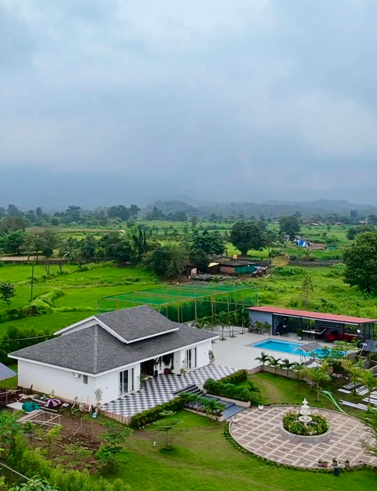 ಮುಂಬೈ ನಗರಕ್ಕೆ ಬಹಳ ಹತ್ತಿರದಲ್ಲಿ, ವಿಶಿಷ್ಟ ಡ್ರ್ಯಾಗನ್ ಹಣ್ಣಿನ ತೋಟವನ್ನು ಹೊಂದಿರುವ ಈ 5 ಎಕರೆ ಸೊಂಪಾದ ಹಸಿರು ಫಾರ್ಮ್ ನಿಮಗಾಗಿ ಕಾಯುತ್ತಿದೆ. ಬಹುಕಾಂತೀಯ ಸೂರ್ಯೋದಯಕ್ಕೆ ಎಚ್ಚರಗೊಳ್ಳಿ, ಸುಂದರವಾದ ಹುಲ್ಲುಹಾಸುಗಳನ್ನು ಆನಂದಿಸಿ, ಧ್ಯಾನ ಕೇಂದ್ರದಲ್ಲಿ ವಿಶ್ರಾಂತಿ ಪಡೆಯಿರಿ ಮತ್ತು ವಿವಿಧ ಹಣ್ಣುಗಳು ಮತ್ತು ಅಡುಗೆಮನೆ ಉದ್ಯಾನ ಸಸ್ಯಗಳ ಬಗ್ಗೆ ತಿಳಿಯಿರಿ. ದೊಡ್ಡ ಡೆಕ್ ಹೊಂದಿರುವ ಬೃಹತ್ ಪೂಲ್ ನಿಮ್ಮ ಸ್ನೇಹಿತರೊಂದಿಗೆ ಸಂಗೀತ ರಾತ್ರಿ ಕಳೆಯಲು ಸೂಕ್ತವಾದ ಸೆಟ್ಟಿಂಗ್ ಆಗಿದೆ. ಪ್ರಶಾಂತ ಸುತ್ತಮುತ್ತಲಿನ ಪರಿಸರದಲ್ಲಿ ಆರಾಮವಾಗಿರಿ ಮತ್ತು ಸುರಕ್ಷಿತ ಮತ್ತು ತೆರೆದ ಸ್ಥಳದ ಐಷಾರಾಮಿಯನ್ನು ಆನಂದಿಸಿ.