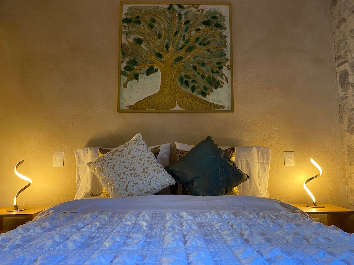 ಇಡೀ ಕುಟುಂಬವನ್ನು ಈ ಅದ್ಭುತ ಸ್ಥಳಕ್ಕೆ ಕರೆದೊಯ್ಯಿರಿ, ಅಲ್ಲಿ ನೀವು ಆಧುನಿಕ ವಿನ್ಯಾಸದೊಂದಿಗೆ ನಮ್ಮ ವಿಶೇಷ ಡಬಲ್-ಎತ್ತರದ ಅಪಾರ್ಟ್ಮೆಂಟ್ ಅನ್ನು ಆನಂದಿಸಬಹುದು. ಈ ವಿಶಿಷ್ಟ ಸ್ಥಳವು ಐಷಾರಾಮಿ ಅನುಭವವನ್ನು ನೀಡುತ್ತದೆ. ಪರಿಸರವನ್ನು ಆನಂದಿಸಲು ಹಸಿರು ಪ್ರದೇಶಗಳಲ್ಲಿ ಆರಾಮವಾಗಿರಿ. ಇದಲ್ಲದೆ, ನಾವು ಖಾಸಗಿ ಪಾರ್ಕಿಂಗ್ ಹೊಂದಿದ್ದೇವೆ, ನಿಮ್ಮ ವಾಸ್ತವ್ಯದಲ್ಲಿ ಆರಾಮ ಮತ್ತು ಸುರಕ್ಷತೆಯನ್ನು ಖಚಿತಪಡಿಸಿಕೊಳ್ಳುತ್ತೇವೆ. ವಾಲ್ 'ಕ್ವಿರಿಕೊದ ಮ್ಯಾಜಿಕ್ನಿಂದ 5 ನಿಮಿಷಗಳು, ಚೋಲುಲಾದಿಂದ 20 ನಿಮಿಷಗಳು ಮತ್ತು ಏರಾಸ್ಸಾಡಾರ್ ಡಿ ಪ್ಯೂಬ್ಲಾದಿಂದ ಕಾರಿನಲ್ಲಿ 12 ನಿಮಿಷಗಳು.