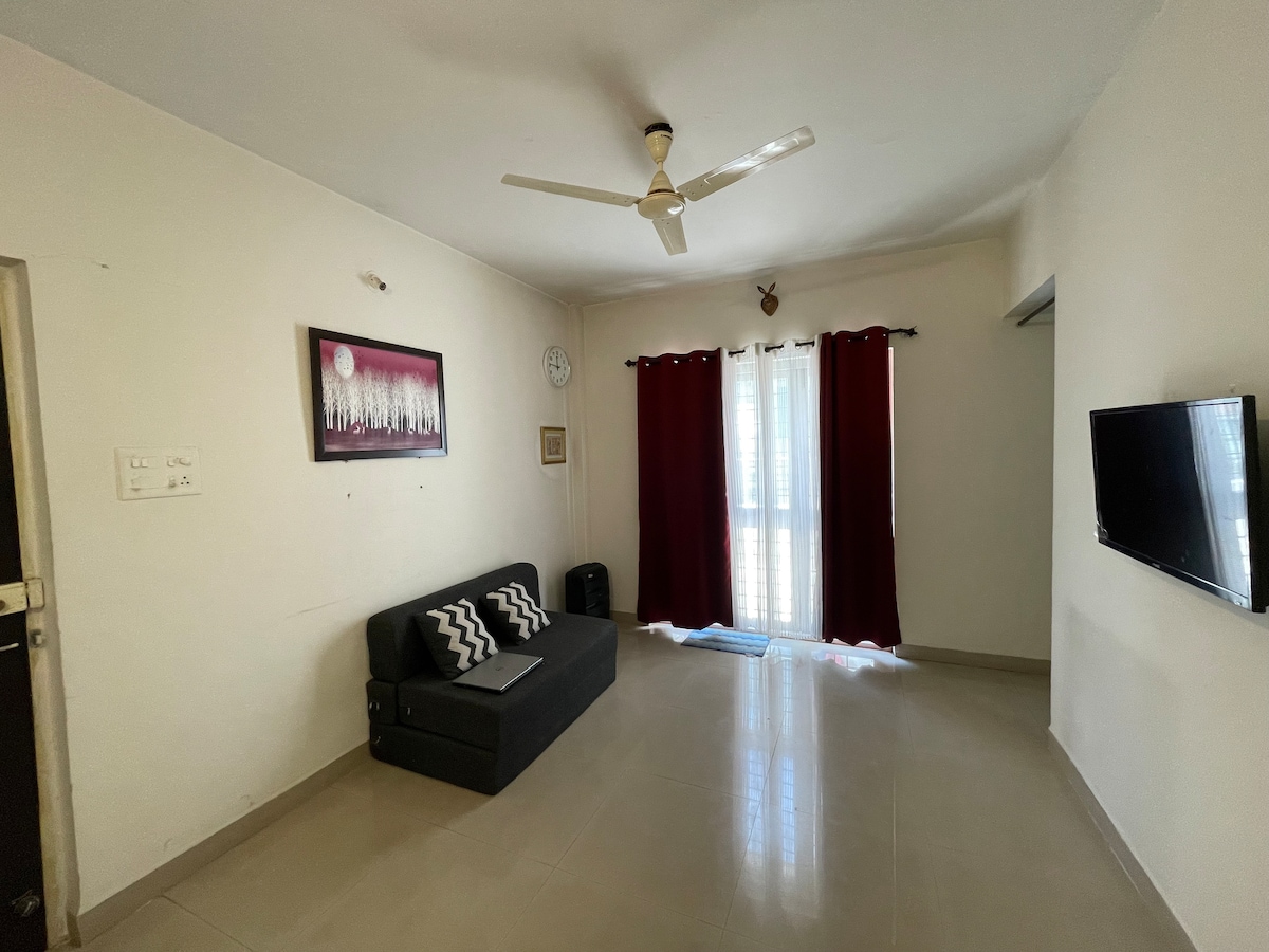 ಸ್ನೇಹಿತರು ಮತ್ತು ಕುಟುಂಬದೊಂದಿಗೆ ನಿಮ್ಮದೇ ಆದ ಸಂಪೂರ್ಣ ಸ್ವತಂತ್ರ 1BHK ಅಪಾರ್ಟ್ಮೆಂಟ್ನಲ್ಲಿ ವಿಶ್ರಾಂತಿ ಪಡೆಯಿರಿ ಮತ್ತು ಆನಂದಿಸಿ. ಶಾಂತಿಯುತವಾಗಿ ನಗರದ ಹಸ್ಲ್ಗೆ ಉತ್ತಮ ಸಂಪರ್ಕದೊಂದಿಗೆ ಶಾಂತಿಯುತ ವಾಸ್ತವ್ಯ/ಕೆಲಸದ ಸ್ಥಳ/ರಜಾದಿನವನ್ನು ಹೊಂದಿರಿ! ನಾನು ಅನೇಕ Airbnb ಗಳನ್ನು ಹೊಂದಿದ್ದೇನೆ ಆದ್ದರಿಂದ ನೀವು ಇದೇ ರೀತಿಯ ಲಿಸ್ಟಿಂಗ್ಗಳನ್ನು ನೋಡಬಹುದು. ಕನಿಷ್ಠ ವೆಚ್ಚದಲ್ಲಿ ಬಾಡಿಗೆ ಸ್ಕೂಟರ್ 24*7 ಕೇರ್ಟೇಕರ್ ಕೈಗೆಟುಕುವ ದರದಲ್ಲಿ ಮನೆ ಆಹಾರ ಖನಿಜಯುಕ್ತ ನೀರಿಗಾಗಿ RO ಸಸ್ಯ