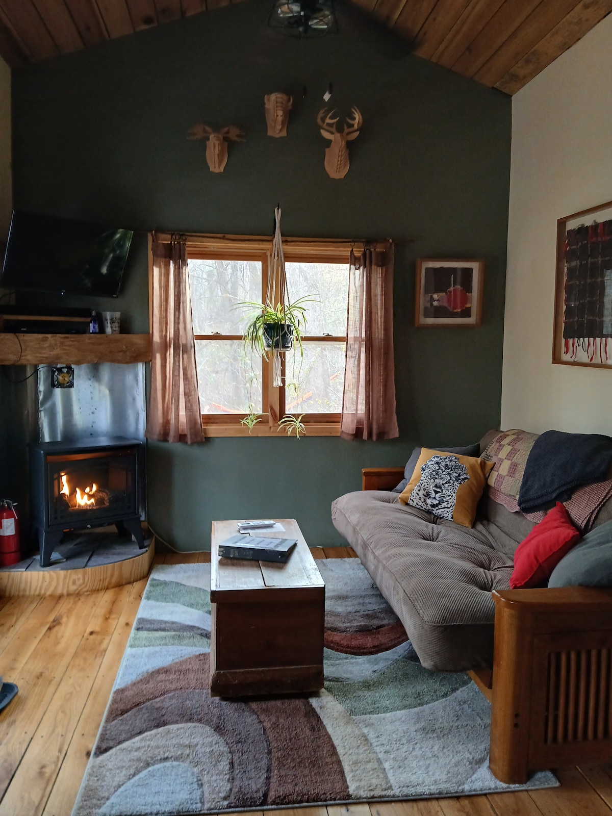 ನಾನು ನಿಮ್ಮನ್ನು ಸೆವೆನ್ ಓಕ್ಸ್ ಕ್ಯಾಬಿನ್ಗೆ ಸ್ವಾಗತಿಸುತ್ತೇನೆ. ನಗರ ಜೀವನದ ಹಸ್ಲ್ ಮತ್ತು ಗದ್ದಲದಿಂದ ದೂರದಲ್ಲಿರುವ ಪ್ರಾಚೀನ ಕ್ಯಾಬಿನ್ನಲ್ಲಿ ವಾಸ್ತವ್ಯ ಹೂಡುವಾಗ ಪ್ರಕೃತಿಯೊಂದಿಗೆ ಸಂಪರ್ಕ ಸಾಧಿಸಲು ಇಷ್ಟಪಡುವ ವ್ಯಕ್ತಿಗಳಿಗೆ ಇದು ಯೋಗಕ್ಷೇಮದ ಸ್ಥಳವಾಗಿದೆ. ಒಳಾಂಗಣವು ವಿವಿಧ ಮರದ-ಪೂರ್ವ ಬಿಳಿ ಪೈನ್, ಸೆಡಾರ್ ಮತ್ತು ಚೆರ್ರಿಯನ್ನು ಒಳಗೊಂಡಿದೆ. ಲಿವಿಂಗ್ ಏರಿಯಾವು ಸ್ಥಳೀಯ ಅಮಿಶ್ ಮಾಡಿದ ಪೀಠೋಪಕರಣಗಳು, ಫ್ಲಶ್ ಟಾಯ್ಲೆಟ್ಗಾಗಿ ಸೆಪ್ಟಿಕ್ ವ್ಯವಸ್ಥೆ, ತ್ವರಿತ ಬಿಸಿನೀರು, ಬಂಕ್ ಬೆಡ್ ಹೊಂದಿರುವ ಸಣ್ಣ ಮಲಗುವ ಕೋಣೆ (ಕೆಳಭಾಗದಲ್ಲಿ ಪೂರ್ಣ ಹಾಸಿಗೆ/ಮೇಲ್ಭಾಗದಲ್ಲಿ ಅವಳಿ), ದಕ್ಷತೆಯ ಅಡುಗೆಮನೆ ಮತ್ತು ರಾಣಿ ಹಾಸಿಗೆ ಹೊಂದಿರುವ ಲಾಫ್ಟ್ ಅನ್ನು ಹೊಂದಿದೆ.
