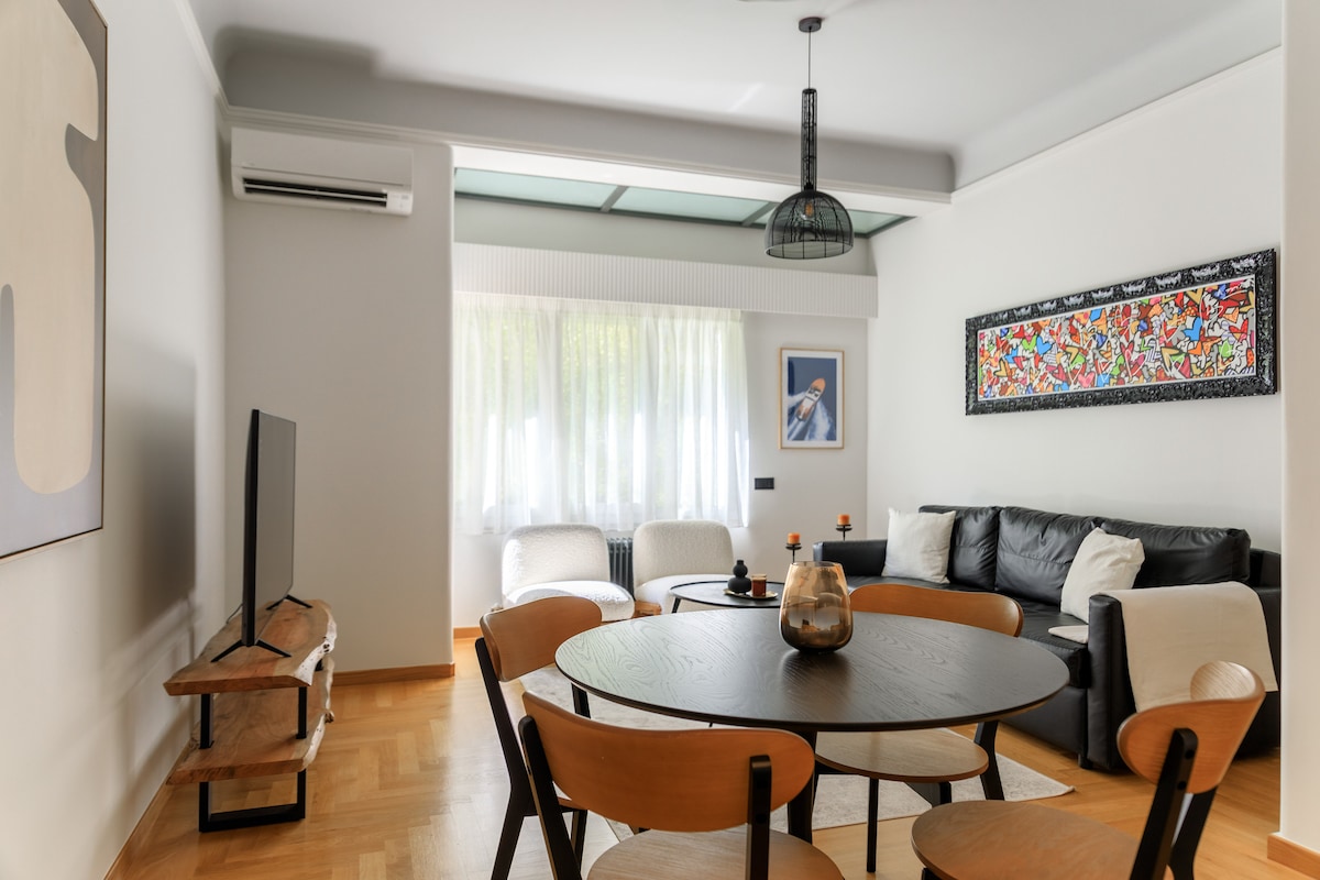 ಸಂಪೂರ್ಣ ಆರಾಮವನ್ನು ಆನಂದಿಸಿ ಮತ್ತು ಈ ಆಧುನಿಕ ಅಪಾರ್ಟ್ಮೆಂಟ್ನಲ್ಲಿ ಅಥೆನ್ಸ್ನ ಅತ್ಯುತ್ತಮ ಅನುಭವಗಳನ್ನು ಪಡೆಯಿರಿ. ನಗರದ ಅತ್ಯಂತ ಜನಪ್ರಿಯ ನೆರೆಹೊರೆಗಳಲ್ಲಿ ಒಂದಾದ ಇದು ದಂಪತಿಗಳು, ಪ್ರಯಾಣಿಕರು ಅಥವಾ ವ್ಯವಹಾರದ ಟ್ರಿಪ್ಗಳಿಗೆ ಸೂಕ್ತವಾಗಿದೆ. ಸಂಪೂರ್ಣ ಸುಸಜ್ಜಿತ ಅಪಾರ್ಟ್ಮೆಂಟ್ ಆರಾಮದಾಯಕ ಊಟದ ಸ್ಥಳ, ಡಬಲ್ ಬೆಡ್ ಹೊಂದಿರುವ ಮಲಗುವ ಕೋಣೆ, ಸಂಪೂರ್ಣ ಸುಸಜ್ಜಿತ ಅಡುಗೆಮನೆ ಮತ್ತು ಆಧುನಿಕ ಬಾತ್ರೂಮ್ ಹೊಂದಿರುವ ಬೆರಗುಗೊಳಿಸುವ ಲಿವಿಂಗ್ ಏರಿಯಾವನ್ನು ಒಳಗೊಂಡಿದೆ.