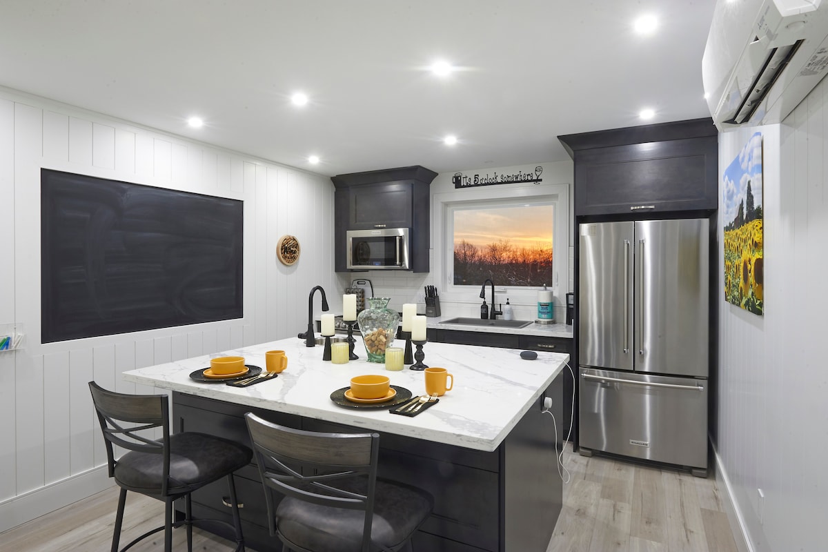 ಈ ಹೊಸದಾಗಿ ನವೀಕರಿಸಿದ ಶಾಲಾ ಮನೆ ಸುಂದರವಾದ ಲೈವ್-ಇನ್ ವಸ್ತುಸಂಗ್ರಹಾಲಯವಾಗಿ ದ್ವಿಗುಣಗೊಳ್ಳುತ್ತದೆ! ಸೊಗಸಾದ ಕಿಟಕಿಗಳಿಂದ ಚೆನ್ನಾಗಿ ಬೆಳಗುವ ಮೇಲ್ಭಾಗವು ಸಂಪೂರ್ಣ ಸುಸಜ್ಜಿತ ಅಡುಗೆಮನೆ, ಮಾಸ್ಟರ್ ಬೆಡ್ರೂಮ್ ಮತ್ತು ಚಮತ್ಕಾರಿ ಟಬ್ ಮತ್ತು ಕೈಯಿಂದ ರಚಿಸಲಾದ ಫಿಟ್ಟಿಂಗ್ಗಳೊಂದಿಗೆ ದೊಡ್ಡ ಬಾತ್ರೂಮ್ನೊಂದಿಗೆ ಕ್ಲಾಸಿಕ್ ಮತ್ತು ಆಧುನಿಕ ಸಮ್ಮಿಳನವನ್ನು ನೀಡುತ್ತದೆ. ಕೆಳಮಟ್ಟವು ಸ್ನಾನಗೃಹಗಳು, ಆರಾಮದಾಯಕವಾದ ಲಿವಿಂಗ್ ಏರಿಯಾ, ಅಡಿಗೆಮನೆ, ಮೀಸಲಾದ ವರ್ಕ್ಸ್ಪೇಸ್ ಮತ್ತು ಪ್ರತ್ಯೇಕ ಪ್ರವೇಶದ್ವಾರವನ್ನು ಹೊಂದಿರುವ 2 ಬೆಡ್ರೂಮ್ಗಳನ್ನು ಹೊಂದಿದೆ. ಹಿಂಭಾಗದ ಒಳಾಂಗಣದಲ್ಲಿ ನೆಲಹಾಸು ಇದೆ; ಚಳಿಗಾಲದ ತಿಂಗಳುಗಳನ್ನು ಹೊರಾಂಗಣ ಚಟುವಟಿಕೆಗಳಿಗೆ ಸಹನೀಯವಾಗಿಸುತ್ತದೆ.