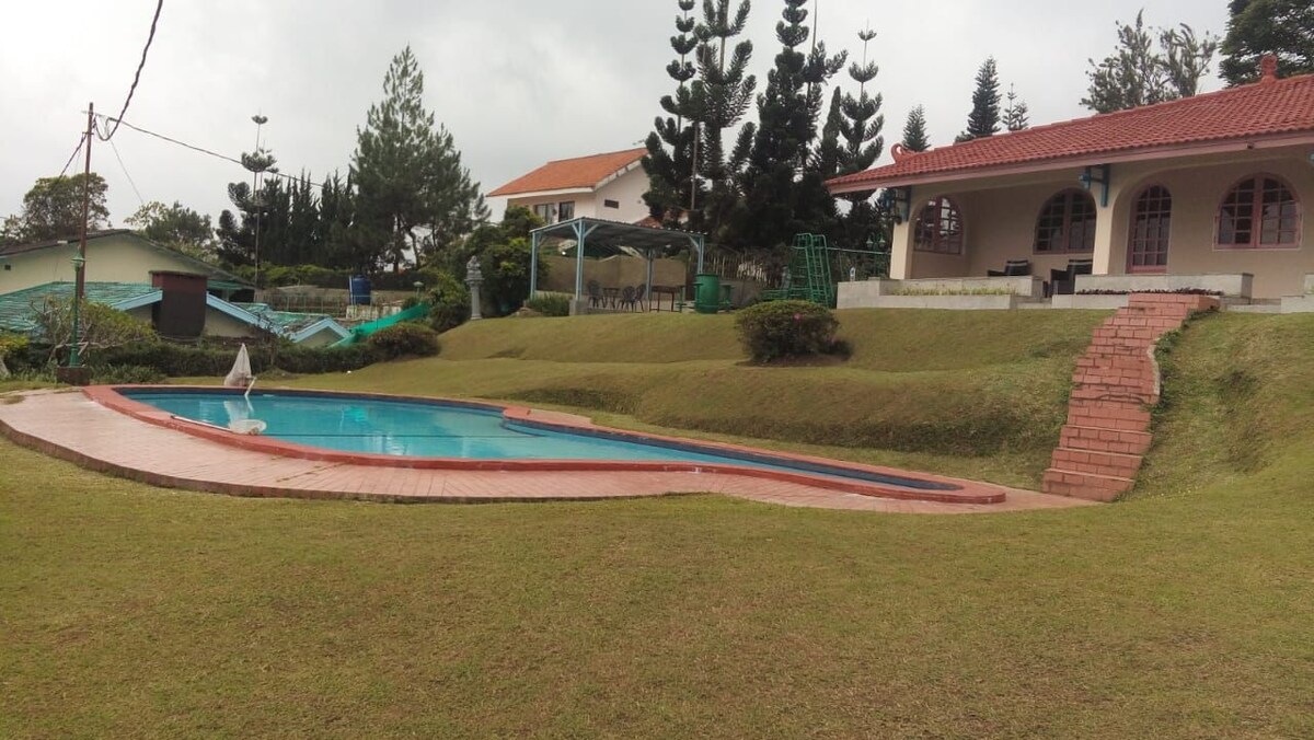 ಮೌಂಟೇನ್ ವ್ಯೂಸ್ ಹೊಂದಿರುವ ವಿಲ್ಲಾ 4 ಬೆಡ್ರೂಮ್ಗಳನ್ನು ಹೊಂದಿದೆ, ಇದನ್ನು ನಿಮಗೆ ಮತ್ತು ನಿಮ್ಮ ದೊಡ್ಡ ಕುಟುಂಬಕ್ಕೆ ವಿಶ್ರಾಂತಿ ಸ್ಥಳವಾಗಿ ಬಳಸಬಹುದು. ವಿಶಾಲವಾದ ಮುಂಭಾಗದ ಅಂಗಳವು ಅನೇಕ ಮೋಜಿನ ಚಟುವಟಿಕೆಗಳಿಗೆ ಸೂಕ್ತವಾಗಿದೆ. ತಮನ್ ಸಫಾರಿ ಸಿಸಾರುವಾ, ಪುಂಕಾಕ್ ಪಾಸ್ ಮತ್ತು ಇತರ ಆಕರ್ಷಣೆಗಳಿಗೆ ಬಹಳ ಹತ್ತಿರ!