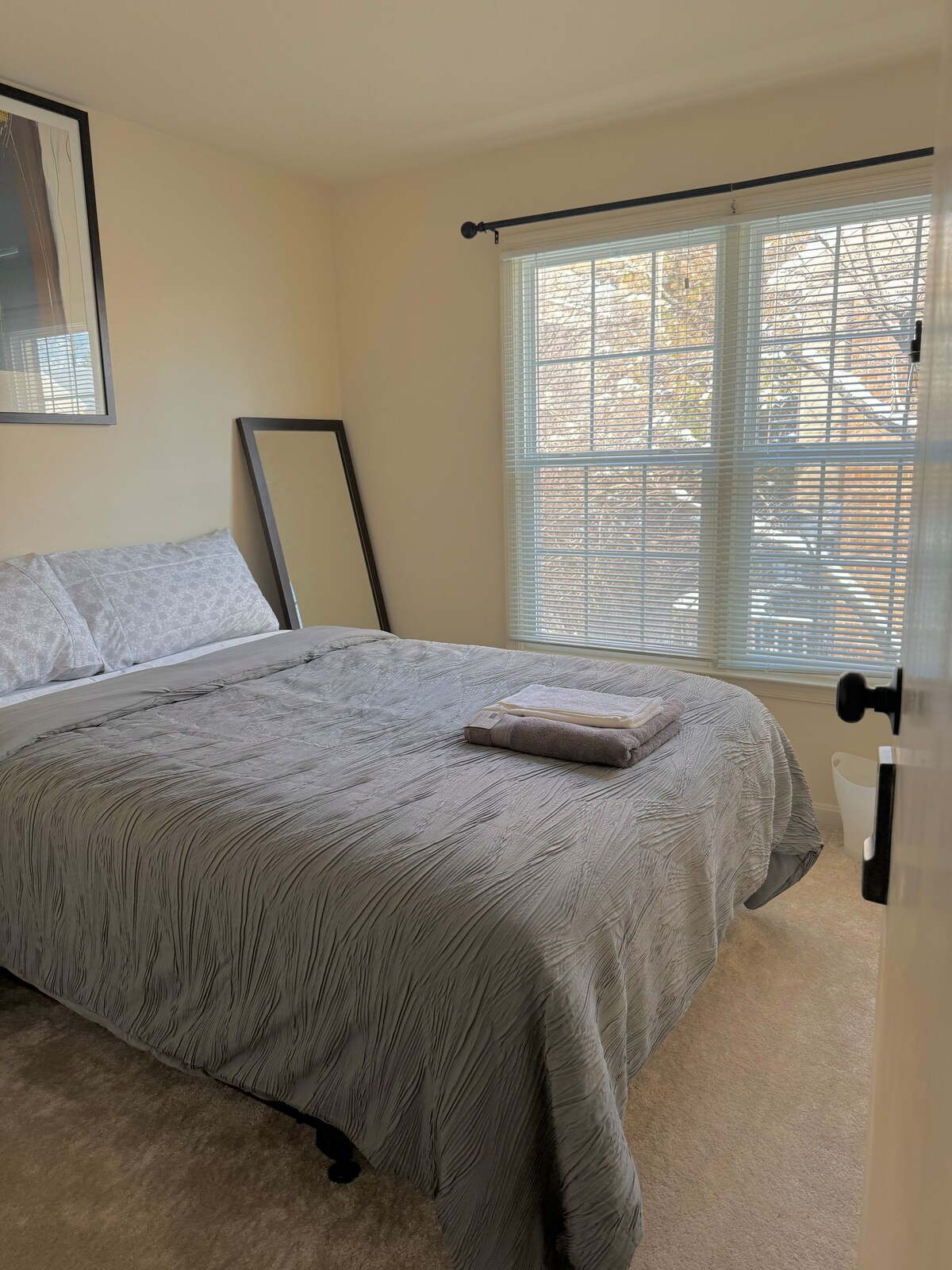 ಎರಡು ವರ್ಷಗಳ ನವೀಕರಣ ಯೋಜನೆಯ ನಂತರ ನನ್ನ ಇತ್ತೀಚಿನ ವಿನ್ಯಾಸವನ್ನು ಹಂಚಿಕೊಳ್ಳಲು ನನಗೆ ಸಂತೋಷವಾಗಿದೆ! ಈ ಪೂರ್ಣಗೊಂಡ ನೆಲಮಾಳಿಗೆಯನ್ನು ಸಂಪೂರ್ಣವಾಗಿ ನವೀಕರಿಸಲಾಗಿದೆ ಮತ್ತು ಸಾಕಷ್ಟು ಉತ್ತಮ ಸೌಲಭ್ಯಗಳೊಂದಿಗೆ ವಿನ್ಯಾಸಗೊಳಿಸಲಾಗಿದೆ! ಇದು ಸುರಕ್ಷಿತ ಪಾರ್ಕಿಂಗ್, ಖಾಸಗಿ ಪ್ರವೇಶದ್ವಾರ, ಹೊಚ್ಚ ಹೊಸ ಅಡುಗೆಮನೆ ಪ್ರದೇಶ ಮತ್ತು ಪ್ರೈವೇಟ್ ಬಾತ್ರೂಮ್, ಮೀಸಲಾದ ವರ್ಕ್ಸ್ಪೇಸ್, ನೈಸರ್ಗಿಕ ಬೆಳಕಿಗಾಗಿ ಸಾಕಷ್ಟು ಕಿಟಕಿಗಳು, ಮಲಗುವ ಕೋಣೆಯಲ್ಲಿ ಬ್ಲ್ಯಾಕ್ಔಟ್ ಪರದೆ ಮತ್ತು ಸಂಪೂರ್ಣ ಸೀಲಿಂಗ್ ಅನ್ನು ಸೌಂಡ್ಪ್ರೂಫ್ ಮಾಡಲಾಗಿದೆ! ಹೆಚ್ಚುವರಿ ಆರಾಮ ಮತ್ತು ಆನಂದಕ್ಕಾಗಿ ಬೆಡ್ರೂಮ್ನಲ್ಲಿ ಹೆಚ್ಚುವರಿ ಸೌಂಡ್ಪ್ರೂಫಿಂಗ್ ಅನ್ನು ಬಳಸಲಾಗಿದೆ!