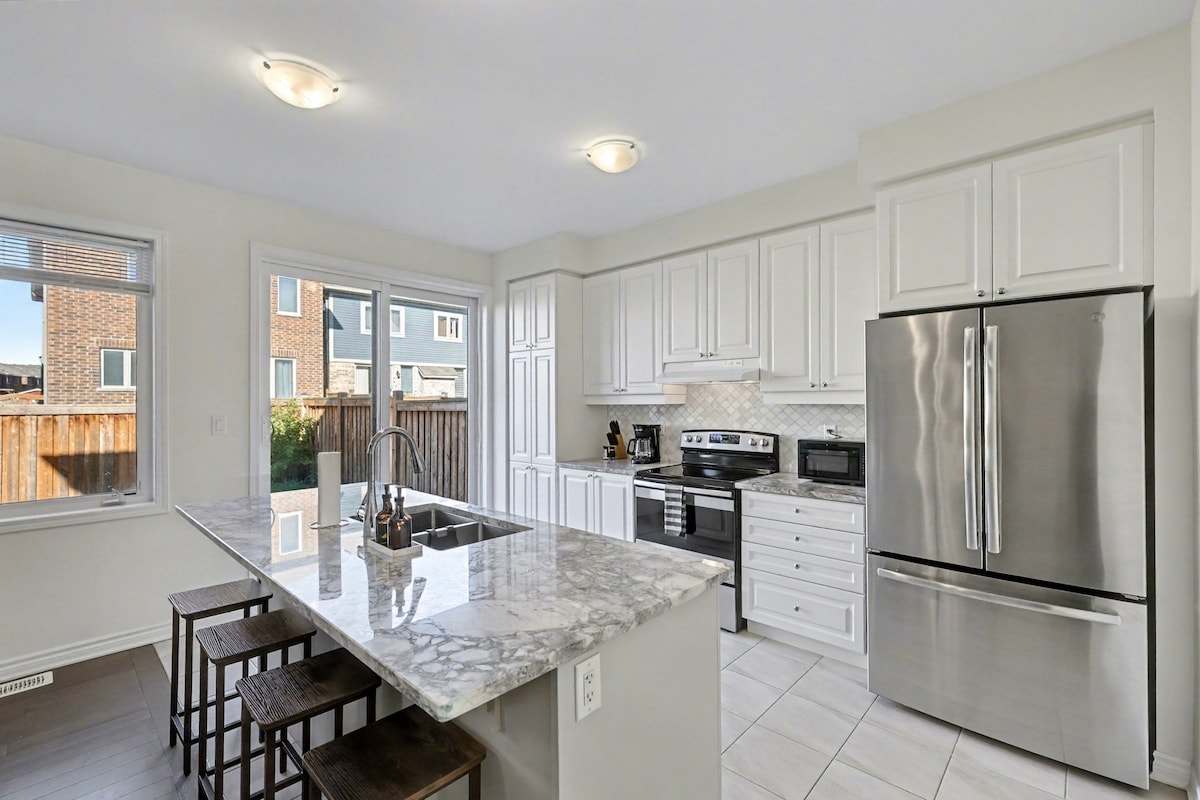 ಅಡುಗೆಮನೆ ಖಂಡಿತವಾಗಿಯೂ ಚೆನ್ನಾಗಿ ಕೆಲಸ ಮಾಡುತ್ತಿದೆ! ಈ ಸೊಗಸಾದ ಸ್ಥಳದಲ್ಲಿ ಇಡೀ ಕುಟುಂಬದೊಂದಿಗೆ ಮೋಜು ಮಾಡಿ. ಥರ್ಮಿಯಾ ಸ್ಪಾ ಗ್ರಾಮವು ಕೇವಲ 5 ನಿಮಿಷಗಳ ವಾಕಿಂಗ್ ಮಾರ್ಗವಾಗಿದೆ! ಹೊಚ್ಚ ಹೊಸ ಮನೆ , ಥರ್ಮಿಯಾ ಸ್ಪಾ ಗ್ರಾಮದಿಂದ ವಾಕಿಂಗ್ ದೂರ! ಕುಟುಂಬ , ಪ್ರಯಾಣಿಕರು ಮತ್ತು ಕೆಲಸಗಾರರಿಗೆ ಉತ್ತಮ ಹೊಸ ಮನೆ. ಅದ್ಭುತ ಸ್ಥಳ! ಹೆದ್ದಾರಿ 412 ಮತ್ತು 407 ರಿಂದ 2 ನಿಮಿಷಗಳು. ವಾಲ್ಮಾರ್ಟ್ ಮತ್ತು ಶಾಪಿಂಗ್, ರೆಸ್ಟೋರೆಂಟ್ಗಳು ಮತ್ತು ಗ್ಯಾಸ್ ಸ್ಟೇಷನ್ಗೆ 2 ನಿಮಿಷಗಳು. ಡೌನ್ಟೌನ್ ಟೊರೊಂಟೊದಿಂದ ಕೇವಲ 30 ನಿಮಿಷಗಳು, 3 ಬೆಡ್ರೂಮ್ಗಳು , 2300 ಚದರ ಅಡಿಗಿಂತ ಹೆಚ್ಚು ವಾಸಿಸುವ ಸ್ಥಳ.