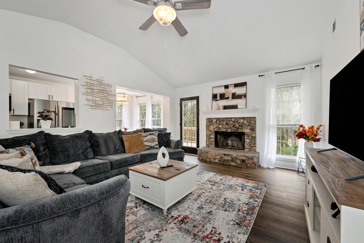 ನಮ್ಮ ಸ್ವೀಟ್ಹೋಮ್ ಅನ್ನು ಆನಂದಿಸಿ! ಸುಂದರವಾಗಿ ಅಲಂಕರಿಸಲಾಗಿದೆ , ಗುಣಮಟ್ಟದ ವಿಶ್ರಾಂತಿ , ತುಂಬಾ ಸ್ವಚ್ಛ ಮತ್ತು ಆರಾಮದಾಯಕವಾಗಿದೆ . ಬೇಸಿಗೆಯಲ್ಲಿ ಹೊರಾಂಗಣ ಪೂಲ್ ಸುತ್ತಲೂ ವಾಸ್ತವ್ಯ ಮಾಡಿ ಮತ್ತು ವಿಶ್ರಾಂತಿ ಪಡೆಯಿರಿ ಅಥವಾ ಆಟಕ್ಕಾಗಿ ಟೆನಿಸ್ ಕೋರ್ಟ್ಗೆ ಹೋಗಿ. ನಗರದ ಶಬ್ದಗಳನ್ನು ಆಲಿಸಿ! ರೈಲು ಆಬರ್ನ್ನ ಸೌಂಡ್ಸ್ಕೇಪ್ನ ವಿಶಿಷ್ಟ ಭಾಗವಾಗಿದೆ. ಧ್ವನಿ ಮತ್ತು ಅನುಭವವನ್ನು ಸವಿಯಲು ನಾವು ನಿಮ್ಮನ್ನು ಪ್ರೋತ್ಸಾಹಿಸುತ್ತೇವೆ." 8 ಮೈಲುಗಳು ಮಾಲ್ ಆಫ್ ಜಾರ್ಜಿಯಾ, 9 ಮೈಲುಗಳು ಫೋರ್ಟ್ ಯಾರ್ಗೊ ಸ್ಟೇಟ್ ಪಾರ್ಕ್, 17 ಮೈಲುಗಳು ಲೇಕ್ ಲ್ಯಾನಿಯರ್. ಉಚಿತ ವೈ-ಫೈ, ಕೇಬಲ್, ಹೈ ಸ್ಪೀಡ್ ಇಂಟರ್ನೆಟ್, ಡೈರೆಕ್ಟ್ ಟಿವಿ ಸ್ಟ್ರೀಮ್, ಬಾಹ್ಯ ಕ್ಯಾಮೆರಾಗಳು.