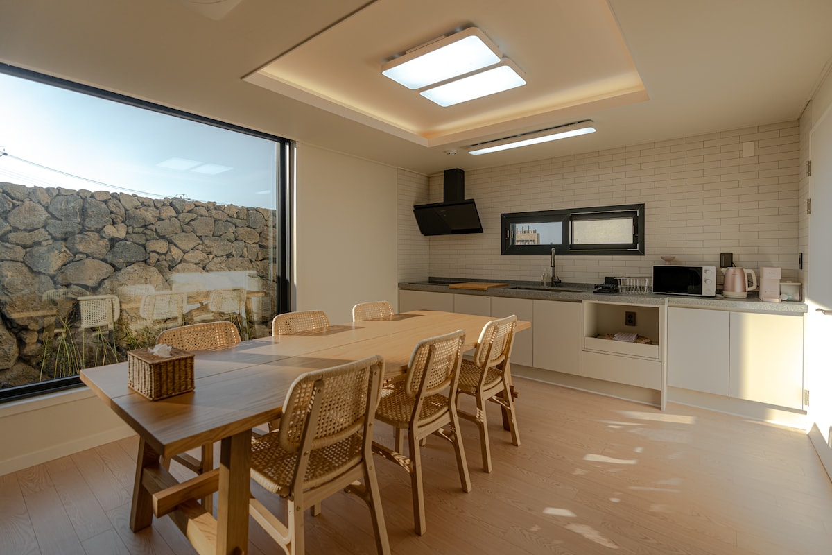 ಹಾಸಿಗೆಯಿಂದಲೇ ನೀವು ನೋಡಬಹುದಾದ ಕಿಟಕಿಯಿಂದ ಸಮುದ್ರದ ನೋಟವು ತುಂಬಾ ಸುಂದರವಾಗಿರುತ್ತದೆ, ಮುಂಜಾನೆ, ಬೆಳಿಗ್ಗೆ, ಮಧ್ಯಾಹ್ನ, ಸಂಜೆ ಮತ್ತು ರಾತ್ರಿಯ ಸಮುದ್ರದ ಪ್ರತಿ ಕ್ಷಣದಿಂದ ನಾನು ಸ್ಪರ್ಶಿಸುತ್ತೇನೆ. ಹುಲ್ಲುಹಾಸಿನ ಕಲ್ಲಿನ ಗೋಡೆಯ ಮೇಲೆ ಸಂಜೆ ಸೂರ್ಯಾಸ್ತದ ಭಾವಪರವಶತೆಯನ್ನು ವಿವರಿಸಲಾಗದು. ಮತ್ತು ಅನೆಕ್ಸ್ನ ಮೇಲ್ಛಾವಣಿಯಿಂದ ಫೈರ್ ಪಿಟ್ ಮತ್ತು ಕಾಫಿ ಬೀನ್ಗಳನ್ನು ಕಡಿಮೆ ಮಾಡುವಾಗ, ನೀವು ಜೆಜುನಲ್ಲಿರುವ ಅವೋಲ್ ಸೂರ್ಯಾಸ್ತದ ಸಮುದ್ರವನ್ನು ಆನಂದಿಸಬಹುದು. ಜೆಜು ಪ್ರಕೃತಿಯ ಸೌಂದರ್ಯದಿಂದ ನೀವು ಆಶ್ಚರ್ಯಚಕಿತರಾಗುತ್ತೀರಿ. ನೀವು ನೋಡುತ್ತಿರುವ ರೂಮ್ ಸಂಪೂರ್ಣ ಗಾಜಿನ ಸಾಗರ ವೀಕ್ಷಣೆ ರೂಮ್ ಆಗಿದೆ. --------------------------- [ರೂಮ್ ಸೆಪರೇಶನ್ ಸೂಚನೆಗಳು] ನಮ್ಮ ವಸತಿ ಸೌಕರ್ಯವು ಅಂಗಳವನ್ನು ಹಂಚಿಕೊಳ್ಳುತ್ತದೆ, ಆದ್ದರಿಂದ ಅದನ್ನು ಮುಖ್ಯ ಮನೆ ಮತ್ತು ಅನೆಕ್ಸ್ ಎಂದು ವಿಂಗಡಿಸಲಾಗಿದೆ. ಓಷನ್ ವ್ಯೂ (ಅನೆಕ್ಸ್) ಮೇಲ್ಛಾವಣಿಯಲ್ಲಿ ಎ-ಫ್ರೇಮ್ ಹೊಂದಿರುವ ಕಟ್ಟಡವಾಗಿದೆ ಮತ್ತು ಮುಖ್ಯ ಮನೆಯು ಪಕ್ಕದ ಬಾಗಿಲಿನ ಬಿಳಿ ಕಟ್ಟಡವಾಗಿದ್ದು, ಅಂಗಳದಲ್ಲಿ ದೊಡ್ಡ ಡೆಕ್ ಇದೆ. ಅನೆಕ್ಸ್ನಲ್ಲಿರುವ ರೂಫ್ಟಾಪ್ ಮುಖ್ಯ ಕಟ್ಟಡ ಮತ್ತು ಅಳಿಯಂದಿರ ಗೆಸ್ಟ್ಗಳಿಗೆ ಹಂಚಿಕೊಂಡ ಸ್ಥಳವಾಗಿದೆ. * ಹಾಸಿಗೆ ಹೆಚ್ಚು ಇರುವುದರಿಂದ ನೀವು ಮಲಗಲು ಆಸಕ್ತಿ ಹೊಂದಿದ್ದರೆ, ಚೆಕ್-ಇನ್ ಮಾಡುವ ಮೊದಲು ನೀವು ಹೋಸ್ಟ್ನಿಂದ ಬೆಡ್ಗಾರ್ಡ್ ಅನ್ನು ವಿನಂತಿಸಬಹುದು. ಬಾರ್ಬೆಕ್ಯೂ, ಪಟಾಕಿಗಳನ್ನು ಮುಂಚಿತವಾಗಿ ಅನ್ವಯಿಸಬಹುದು (ಹೆಚ್ಚುವರಿ ವೆಚ್ಚವಿದೆ)