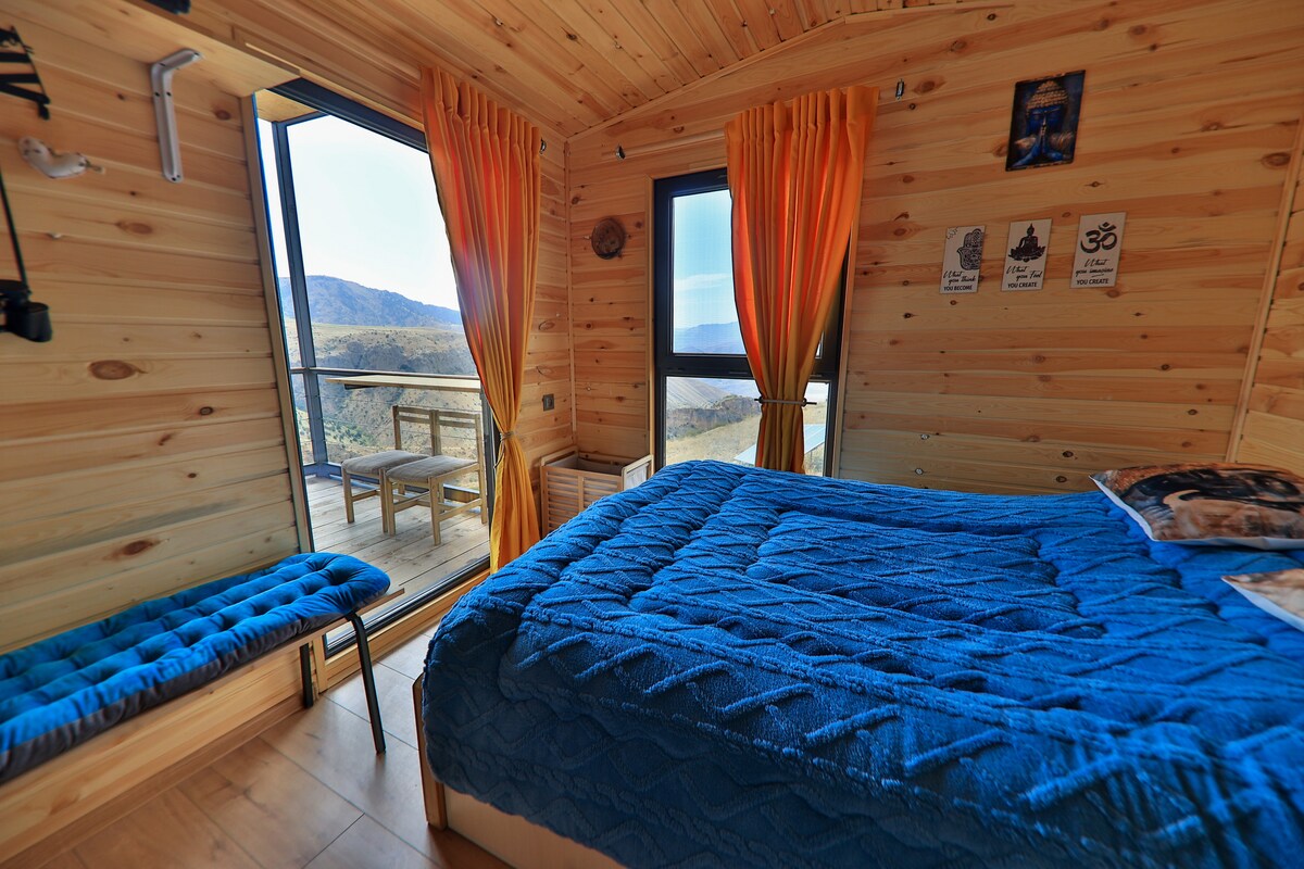 ಆರಾಮದಾಯಕ ವಾತಾವರಣದಲ್ಲಿ ಪರ್ವತಗಳ ಉಸಿರು ನೋಟಗಳ ಸಂಯೋಜನೆಯೊಂದಿಗೆ ಶಾಂತಿಯುತ ವಿಹಾರ. ಎಲ್ಲಾ ಆರಾಮ ಮತ್ತು ವಿನ್ಯಾಸದೊಂದಿಗೆ ಮರದ ಮನೆ.