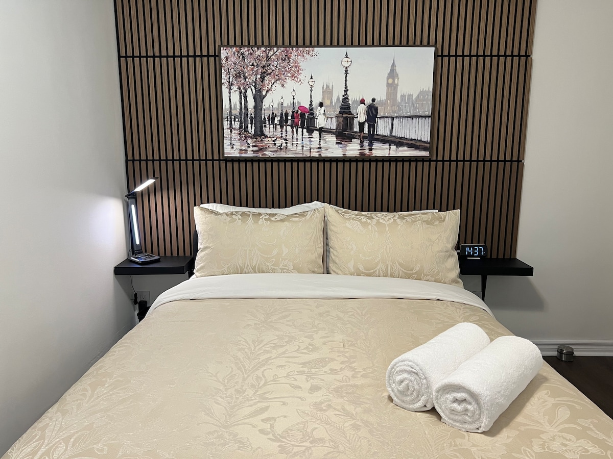 ಖಾಸಗಿ ಪ್ರವೇಶ, ಪೂರ್ಣ ಅಡುಗೆಮನೆ, ಸೊಗಸಾದ ಬಾತ್ರೂಮ್ ಮತ್ತು ಆರಾಮದಾಯಕ ಲಿವಿಂಗ್ ಪ್ರದೇಶವನ್ನು ಹೊಂದಿರುವ ಆಧುನಿಕ 1-ಬೆಡ್ರೂಮ್ ನೆಲಮಾಳಿಗೆಯ ಸೂಟ್. ಇನ್-ಸೂಟ್ ಲಾಂಡ್ರಿ, ಹೈ-ಸ್ಪೀಡ್ ವೈಫೈ, ಸ್ಟ್ರೀಮಿಂಗ್ಗಾಗಿ ಸ್ಮಾರ್ಟ್ ಟಿವಿ, ಉಚಿತ ಪಾರ್ಕಿಂಗ್ ಮತ್ತು ವಿಶ್ರಾಂತಿಗಾಗಿ ವಿನ್ಯಾಸಗೊಳಿಸಲಾದ ಆರಾಮದಾಯಕ ಬೆಡ್ರೂಮ್ ಅನ್ನು ಆನಂದಿಸಿ. ಅದರ ಪ್ರಕಾಶಮಾನವಾದ, ತೆರೆದ ಪರಿಕಲ್ಪನೆಯ ವಿನ್ಯಾಸ ಮತ್ತು ಸಾರಿಗೆಗೆ ಹತ್ತಿರವಿರುವ ಅವಿಭಾಜ್ಯ ಸ್ಥಳದೊಂದಿಗೆ, ನೀವು ಪ್ರಮುಖ ಆಕರ್ಷಣೆಗಳು, ಶಾಪಿಂಗ್ ಮತ್ತು ಊಟಕ್ಕೆ ಸುಲಭ ಪ್ರವೇಶವನ್ನು ಆನಂದಿಸುತ್ತೀರಿ. ಆರಾಮ, ಅನುಕೂಲತೆ ಮತ್ತು ಮನೆಯಿಂದ ದೂರದಲ್ಲಿರುವ ಅನುಭವವನ್ನು ಬಯಸುವ ದಂಪತಿಗಳು ಅಥವಾ ವ್ಯವಹಾರ ಪ್ರಯಾಣಿಕರಿಗೆ ಸೂಕ್ತವಾಗಿದೆ.