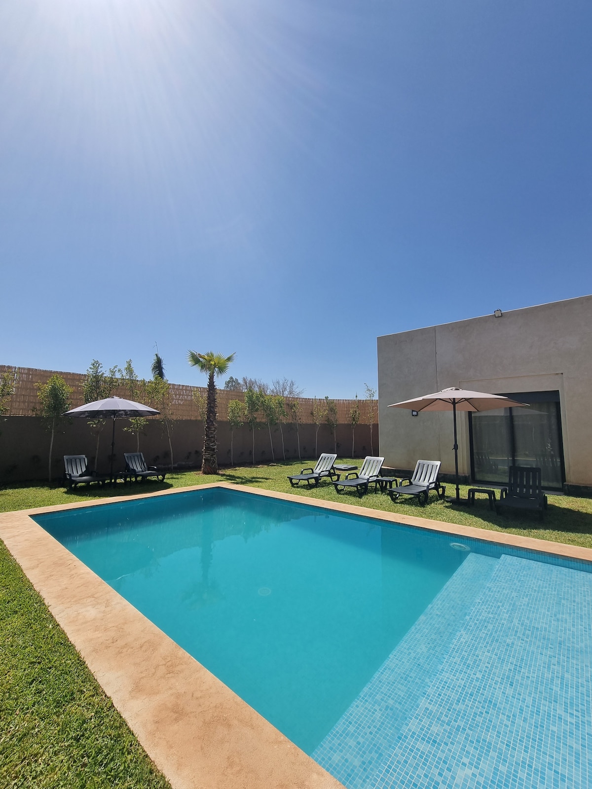 ಬಿಸಿಯಾದ ಪೂಲ್ನೊಂದಿಗೆ (ಹೆಚ್ಚುವರಿ ಶುಲ್ಕದ ವಿನಂತಿಯ ಮೇರೆಗೆ) 14 ಮೀಟರ್ಗಳಷ್ಟು (ಹೆಚ್ಚುವರಿ ಶುಲ್ಕದ ವಿನಂತಿಯ ಮೇರೆಗೆ) 1500 ಮೀ 2 ರ ದೊಡ್ಡ ಸುತ್ತುವರಿದ ಮತ್ತು ಮರದ ಉದ್ಯಾನದಲ್ಲಿ 300 ಮೀ 2 ರ ಸಮಕಾಲೀನ ಮನೆ ಮರಾಕೆಚ್ನಲ್ಲಿರುವ ಅತ್ಯಂತ ಸುಂದರವಾದ ಗಾಲ್ಫ್ ಕೋರ್ಸ್ಗಳು ಮತ್ತು ಅನೇಕ ಚಟುವಟಿಕೆಗಳಿಗೆ ಹತ್ತಿರ (ವೇಕ್ಬೋರ್ಡಿಂಗ್, ಕ್ವಾಡ್ ಬೈಕಿಂಗ್, ಟ್ರೀ ಕ್ಲೈಂಬಿಂಗ್, ವಾಟರ್ ಪಾರ್ಕ್, ಸ್ಕೀಯಿಂಗ್...) ಶಿಫಾರಸು ಮಾಡಿದ ಆತಿಥ್ಯ ಸೇವೆಗಳು (ಮನೆಮಾಲೀಕರು ದಿನಕ್ಕೆ 8 ಗಂಟೆಗಳ ಕಾಲ ಸ್ವಚ್ಛಗೊಳಿಸುವಿಕೆ ಮತ್ತು ಅಡುಗೆಯನ್ನು ದಿನಕ್ಕೆ 20 ಯೂರೋಗಳಿಗೆ ನೋಡಿಕೊಳ್ಳುತ್ತಾರೆ) ಮನೆಯಲ್ಲಿ ಧೂಮಪಾನ ಮಾಡಬೇಡಿ.