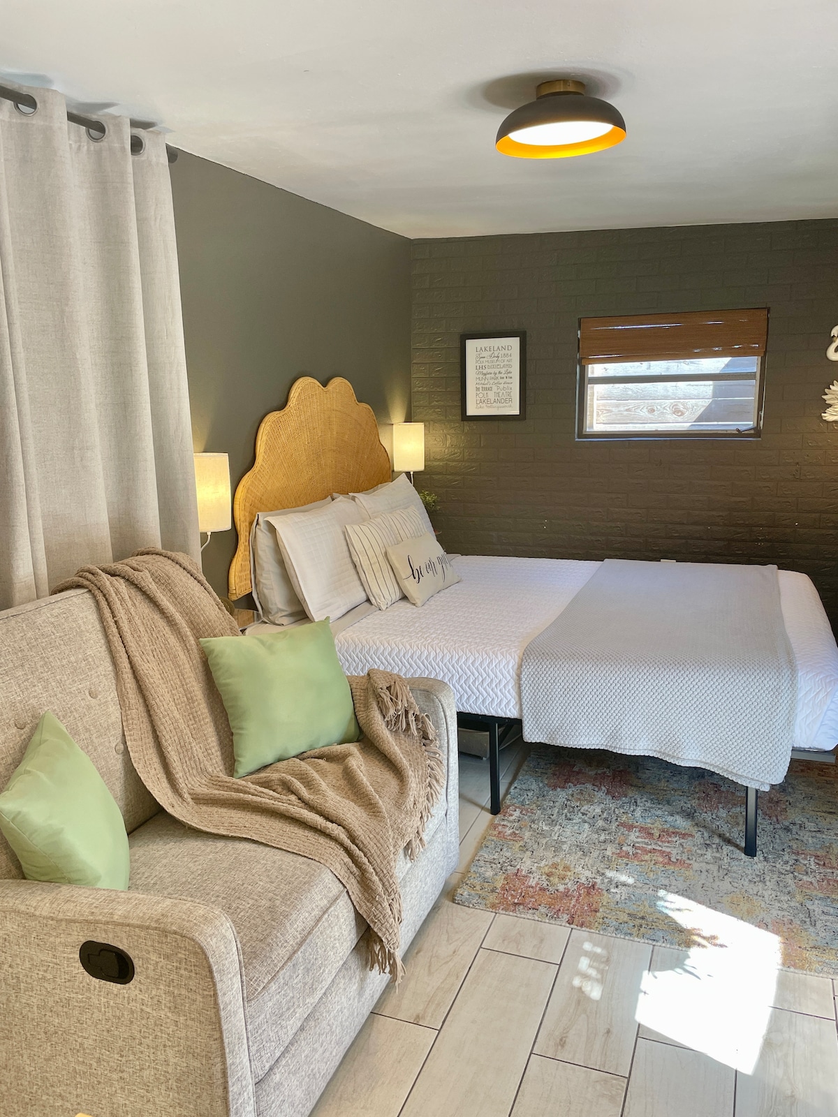 Your cozy retreat awaits you in Sunshine Studio! It is centrally located in Lakeland, a short drive from downtown, Florida Southern College (1.4 miles) Southeastern University (1 mile) The studio comes fully equipped with everything you need to enjoy a relaxing or adventurous stay! Cook a dinner for two in the well appointed modern kitchen! Enjoy a glass of wine in the warm lit courtyard to cap the night! Private parking is just a few steps down the pathway through the courtyard from your door!